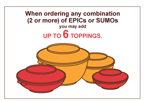 All toppings are $15.00 per container. All containers contain approximately 5-7 portions.